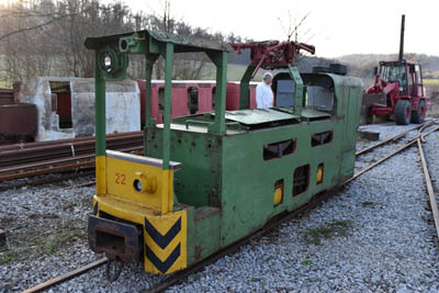 Anfang der 90er Jahre wurde die 600-Sohle als Hauptfördersohle abgeworfen. Auch auf Friedrich-Heinrich gab es Steiger mit Sinn für historische Maschinen. Einzelne Fahrzeuge gingen an Feldbahnsammlungen und Museen. FH 20 gelangte über die Sammlung in Ilmenau an den Feld- und Kleinbahnverein e.V. in Nidderau und wurde auf einem Lagerplatz in Rodgau-Niederroden abgestellt. Als wir am 14.11.2010 auf einem benachbarten Lagerplatz einen Rungenwagen für unsere Sammlung abholten, fiel uns die dort seit mehreren Jahren ungeschützt im Regen stehende Maschine sofort auf; blieb für uns aber letztlich unerreichbar. Als dieser Verein im Mai 2015 sein Gelände unvermittelt räumen mußte und uns ein guter Freund einen Tipp gab, konnten wir die Lok übernehmen. Es war die erste und lange gesuchte Fahrdrahtlokomotive in unserer Sammlung. Für die Kaufverhandlung und den Transport blieben dabei genau 5 Tage Zeit. Parallel dazu liefen die Vorbereitungen zum 2. Stollenfest. |