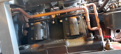 Da eine Kühlwasserpumpe für diese alte Maschine nicht mehr beschaffbar ist, haben ich den Motor kurzerhand auf Konvektionskühlung umgebaut. Das entspricht durchaus den von Hatz für diesen Motor vorgesehenen Betriebszuständen. In Verbindung mit dem riesigen Kühlwasserreservoir und bei der bei uns üblichen Belastung funktioniert das. Bei dieser Gelegenheit wurde auch der Kühlwasserkreislauf gereinigt. |