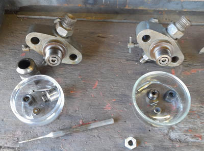 Für die Einspritzpumpe wurden neue passende Ventilfedern beschafft, die Steuermechanik entsprechend eingestellt und natürlich alles von Farbe und Schmutz befreit. Und siehe da: Erst bei Überdrehzahl öffnet die Pumpe den Rücklauf zum Filter. So soll es sein. |